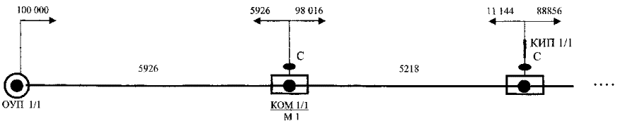 Рис. 4 Пример схемы размещения муфт на регенерационном участке