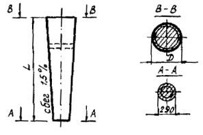 2.2. Основные размеры полых конических свай указаны на рис.1 и в табл.1.