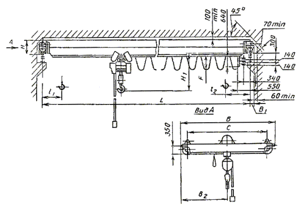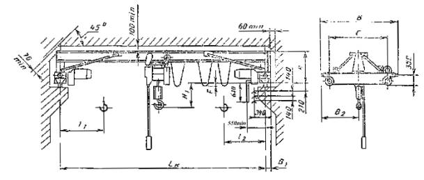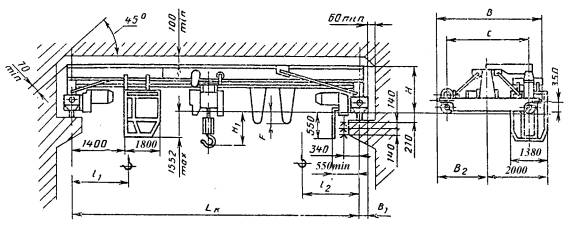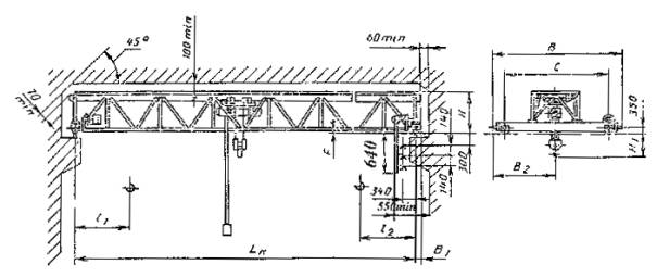 Кран типа 1 исполнения Б для пролетов от 4,5 до 16,5 м