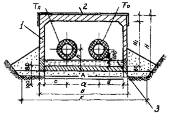 1.5. В комплекте с изолированными трубами должны поставляться следующие теплоизолированные ППУ фасонные изделия, элементы и детали: - отводы с шагом 7,5 град на угол от 75 до 90 град; - равнопроходные и разнопроходные тройники одноплоскостные и двухплоскостные; - тройники-спускники; - неподвижные опоры; - компенсаторы осевые сильфонные; - стартовые компенсаторы; - миникомпенсаторы; - воздушники; - запорная арматура; - концевые заглушки; - элементы изоляции стыковых соединений; - заглушки теплоизоляции; - полуцилиндры из ППУ; - компоненты "А" и "Б" для заливки стыков; - гильзы резиновые для прохода теплопровода сквозь стенки строительных конструкций; - амортизирующие прокладки для компенсации температурных удлинений на углах поворота; - элементы системы оперативного дистанционного контроля (см. п.2.46). Примечание. При необходимости по специальному заказу могут поставляться фасонные изделия, элементы и детали других видов. 1.6. Теплоизоляция фасонных изделий, элементов и деталей должна соответствовать требованиям ТУ 400-24-578-95. Примечание. Допускается комплектация труб изолированными фасонными изделиями и элементами импортного производства при наличии сертификата соответствия Госстандарта РФ или Минстроя РФ. 1.7. При проектировании и строительстве тепловых сетей с применением труб, фасонных изделий, элементов и деталей с индустриальной теплоизоляцией из пенополиуретана в полиэтиленовой оболочке должны соблюдаться требования настоящих ВСН всеми заводами-изготовителями и другими поставщиками изолированных труб, фасонных изделий, элементов и деталей проектными, строительными, эксплуатационными и согласующими организациями. 2. ПРОЕКТИРОВАНИЕ ТЕПЛОВЫХ СЕТЕЙ2.1. При проектировании бесканальной прокладки городских тепловых сетей из труб, фасонных изделий, элементов и деталей теплоизолированных ППУ следует соблюдать общие требования СНиП 2.04.07-86*, СНиП 3.05.03-85 "Тепловые сети" и СНиП 2.04.14-88 "Тепловая изоляция оборудования и трубопроводов". 2.2. Канальная прокладка должна применяться под проезжей частью городских проездов и площадями города. При пересечении городских и местных проездов, трамвайных путей теплопроводы с пенополиуретановой изоляцией в полиэтиленовой оболочке должны прокладываться, как правило, в стальных футлярах, в отдельных случаях в каналах или в полупроходных каналах высотой не менее 1,4 м. При невозможности выдержать указанные расстояния, теплопроводы должны прокладываться либо в каналах на расстоянии не менее 2-х метров от фундаментов зданий или в стальных футлярах, либо в пристенных (пристроенных к фундаментам зданий) проходных каналах из монолитного железобетона с металлоизоляцией. При этом теплогидроизоляция стыков изолированных труб должна выполняться с использованием полиэтиленовых муфт на сварке. 2.4. Прокладку тепловых сетей под проездами общегородского значения, площадями с усовершенствованными дорожными покрытиями, при пересечении крупных автомагистралей и железных дорог следует предусматривать в проходных каналах, щитовых тоннелях или футлярах. 2.5. Трубопроводы тепловых сетей с пенополиуретановой изоляцией в полиэтиленовой оболочке при бесканальной прокладке, располагаемые над сооружениями метрополитена, должны прокладываться в стальных футлярах, без устройства монолитных камер, концы стального 