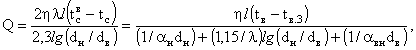 где L1 - коэффициент кинематической вязкости, м2/с, принимаемый для температур: 90°С - L=0,32-10-6 80°С - L=0,36-10-6 70°С - L= 0,41-10-6 55°С - L=0,53-10-6 dp - расчетный диаметр (внутренний) трубы: Dd=0,5×(2dн+Dd2-4S-2DS), где: dн - наружный диаметр трубы, м; Ddн - допуск на наружный диаметр трубы, м; S - толщина стенки трубы, м; DS - допуск на толщину стенки трубы, м; Rекв - число Рейнольдса, соответствующее началу квадратичной области гидравлических сопротивлений при турбулентном течении воды, определяется по формуле: