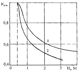 2. По номограмме рис. 5.1 определяют 3,5hнас/L = 0,28; L = 9,6 м (см. п. 3 предыдущего примера), отсюда hнас = 0,77