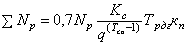 где Qрасч - расчетная величина нагрузки, передаваемой колесом на поверхность покрытия, кН; р - давление, МПа. (Значения D и р для расчетной нагрузки типа А см. Приложение 1). 3.19. Учет характера действующей нагрузки (кратковременное многократное нагружение, статическое нагружение) осуществляется через принятие соответствующих расчетных значений расчетных характеристик конструктивных слоев, а также через введение коэффициента динамичности при назначении величины нагрузки. 3.20. В зависимости от вида расчета конструкции используют различные характеристики, отражающие интенсивность воздействия на нее подвижной нагрузки: N - перспективную (на конец срока службы) общую среднесуточную интенсивность движения; Np - приведенное к расчетной нагрузке среднесуточное (на конец срока службы) число проездов всех колес, расположенных по одному борту расчетного автомобиля, в пределах одной полосы проезжей части (приведенная интенсивность воздействия нагрузки); SNp - суммарное расчетное число приложения приведенной расчетной нагрузки к расчетной точке на поверхности конструкции за срок службы. 3.21. Перспективную общую среднесуточную интенсивность устанавливают по данным анализа закономерностей изменения объема перевозок и интенсивности движения при проведении титульных экономических обследований. 3.22. Величина Np приведенной интенсивности на последний год срока службы определяют по формуле: где n - общее число различных марок транспортных средств в составе транспортного потока; Nm - число проездов в сутки в обоих направлениях транспортных средств m-й марки; Sm cум - суммарный коэффициент приведения воздействия на дорожную одежду транспортного средства т-й марки к расчетной нагрузке Qрасч, определяемый в соответствии с Приложением 1. или по формуле: где п - число марок автомобилей; n1m - суточная интенсивность движения автомобилей m-й марки в первый год службы (в обоих направлениях), авт/сут; Np - приведенная интенсивность на последний год срока службы, авт/сут; Трдг - расчетное число расчетных дней в году, соответствующих определенному состоянию деформируемости конструкции (определяемое в соответствии с приложением 6); kn - коэффициент, учитывающий вероятность отклонения суммарного движения от среднего ожидаемого (табл. 3.3); Кс - коэффициент суммирования (см. Приложение 6, табл. П.6.5) определяют по формуле:
