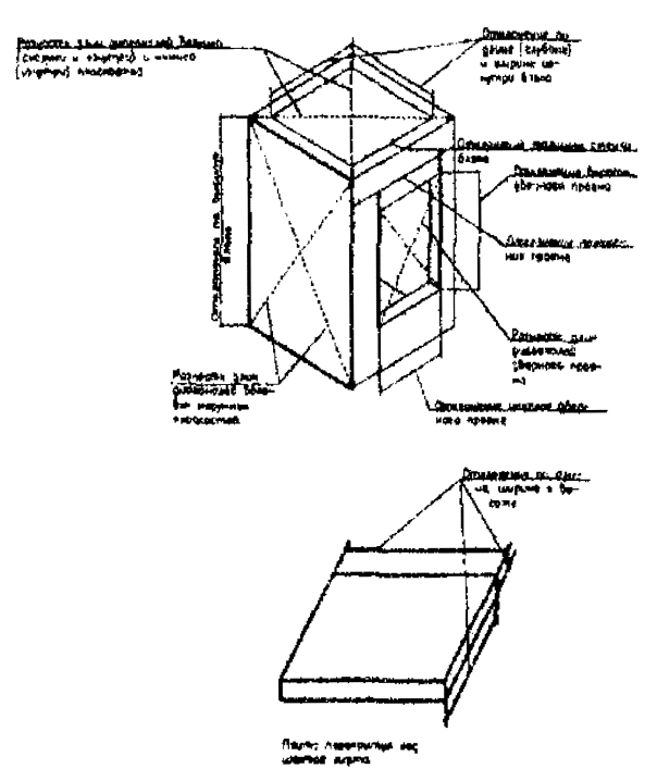 блоков в уровне нижнего сечения с рисками осей нижележащего блока. Относительно