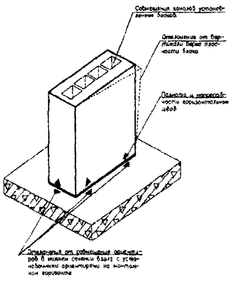 вертикальной плоскости блоки следует устанавливать, выверяя плоскости двух