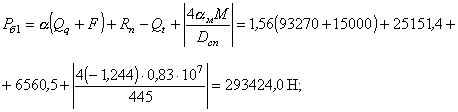 Pб1=0,5×p×Dсп×bэ×qобж=0,5×3,14×445×12×20=167676,0 H Pб1=0,4× 3.5. Приращение нагрузки в болтах в рабочих условиях