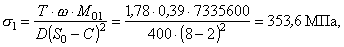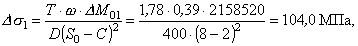 где Т = 1,78 - принимается по черт. 8; s21 = 353,6 МПа; s22 = -353,6 МПа. 6.4. Приращения меридиональных напряжений в обечайке на наружной и внутренней поверхностях в рабочих условиях: