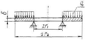 применимы при условии 2.1.3. При d1<0,1 используются расчетные схемы черт. 6, 7, 13, 15; расчетные нагрузки определяют по п. 2.1.4. При d1³0,1 расчетные нагрузки определяют по п. 2.1.5 (черт. 1 - 4). Расчетная схема для центральной панели