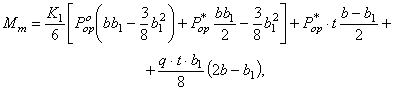 2.3.8.2.2. Изгибающий момент в крайних панелях: в произвольном сечении для несдвинутых к центру плиты стяжек (см. черт. 13)