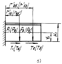 а) затяжка; б) при подаче давления Черт. 1 Расчетная схема для промежуточной панели