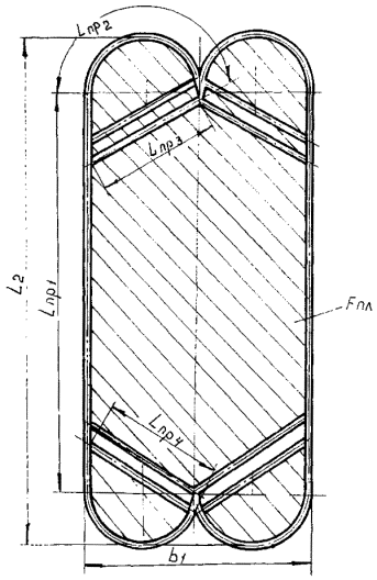 площадь половины гофрированного поля между стяжками