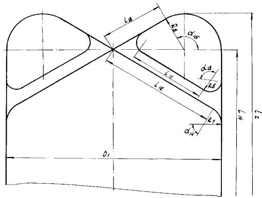 W1-1 - момент сопротивления волокон 1-1. 5.6. Верхняя накладка (черт. 33) 5.6.1. При усилении ослабленного сечения верхней штанги верхней накладкой длина прорези выбирается по условию