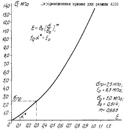 Механические характеристики Eo, sпр, sо, Во, m определяются по деформационной кривой (черт. 47) для соответствующей марки резины. Программа расчета характеристики прокладки дана в приложении 1 Порядок ввода исходных данных в программу следующий: