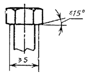 1. Фаска на опорной поверхности болтов - под углом не более 15° (черт. 5).