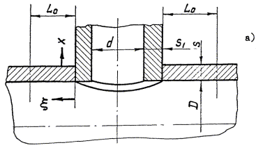 Расстояние Lo меду патрубком и другими концентраторами напряжений должно удовлетворять условию: