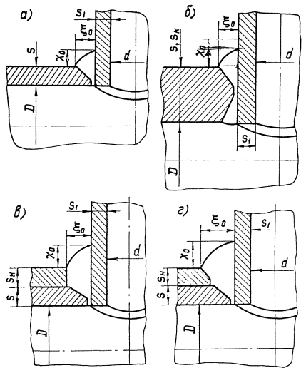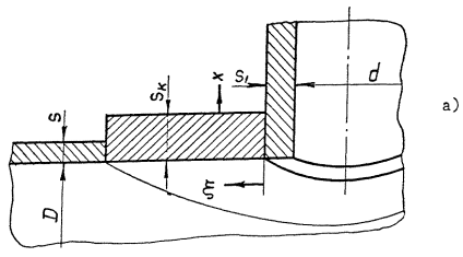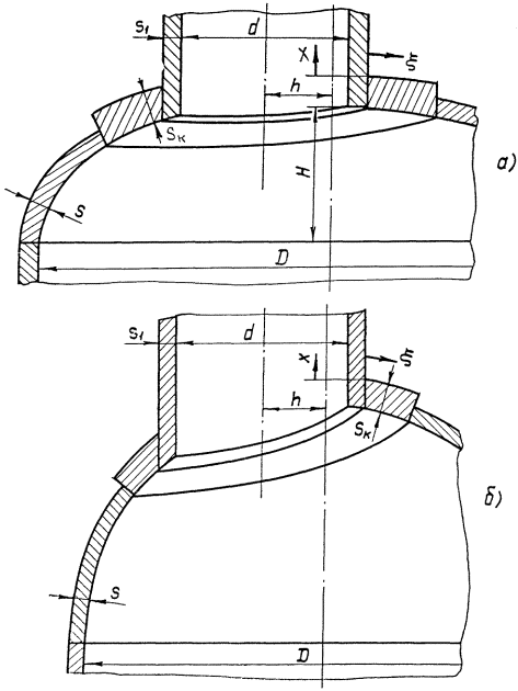 11. НАПРЯЖЕНИЯ В МЕСТЕ ПЕРЕСЕЧЕНИЯ ПАТРУБКА С ВВАРНЫМ КОЛЬЦОМ НА СФЕРИЧЕСКОМ ДНИЩЕ11.1. Область применения расчетных формул (черт. 4б)