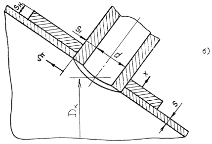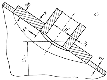2. НАПРЯЖЕНИЯ В МЕСТЕ ПЕРЕСЕЧЕНИЯ ПАТРУБКА С ВВАРНЫМ КОЛЬЦОМ НА ОБЕЧАЙКЕ2.1. Область применения расчетных формул (черт. 3а)
