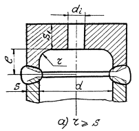 где di - диаметр каждого отверстия. Число отверстий не должно превышать трех. 8.3.6. Если значение S1 получается меньше S, то принимается S1=S. 8.3.7. Толщина S2 в сечении кольцевой выточки для заглушки типа d должна быть не менее определенной по формуле