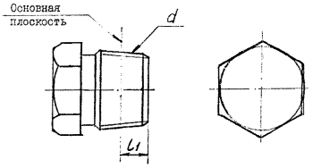 Пример условного обозначения бобышки типа 1, исполнения 2, с резьбой G-3/8 длиной 100 мм, из стали 10Г2: Бобышка 1-2-G-3/8-100-10Г2 АТК 24.218.01-90 То же, бобышки типа 2, исполнения 3 с резьбой Rс 1/4, длиной 100 мм из стали 09Г2С: Бобышка 2-3- Rc 1/4-100-09Г2С АТК 24.218.01-90 Тип 3 Масса - 0,05 кг Рисунок 7 Пример условного обозначения бобышки типа 3 с резьбой М12´1,25 из стали 10Г2: Бобышка 3-М12´1,25-10Г2 АТК 24.218.01-90 3.2 Пробки по конструкции и размерам предусмотрены трех исполнений: исполнение 1 - с метрической резьбой (рисунок 8, таблица 8); исполнение 2 - с трубной цилиндрической резьбой (рисунок 8, таблица 9); исполнение 3 - с трубной конической резьбой (рисунок 9, таблица 10). Исполнения 1 и 2 Рисунок 8 Исполнение 3 Остальное - см. рисунок 8 Рисунок 9 Таблица 8 Размеры в миллиметрах