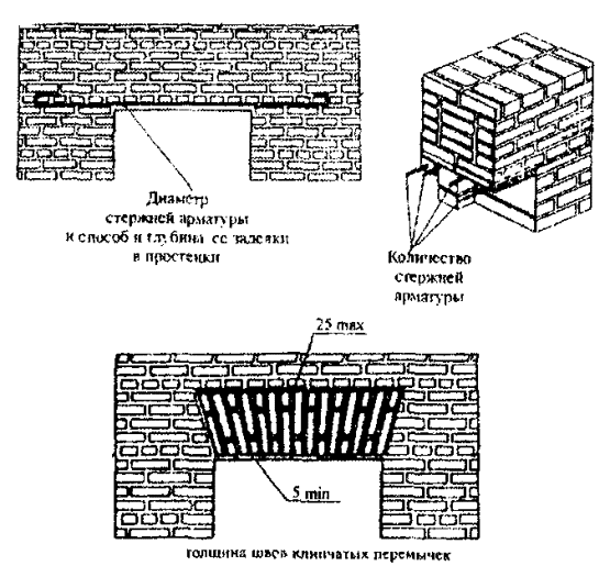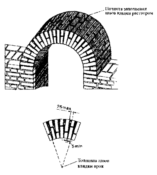 швов, облегченной кладки, кладки столбов, перемычек, арок и сводов, кладки стен