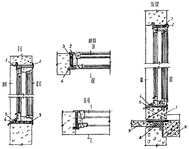Рис. 5 Пример теплоизоляции оконных и балконных блоков с использованием монтажных пен типа "Макрофлекс" 1 - деревянный штапик; 2 - наличник; 3 - монтажная пена; 4 - деревянный клин; 5 - фартук из кровельного железа; 6 - профрезерованная щель; 7 - ячеистобетонные блоки мелкой резки; 8 - утеплитель; 9 - балконная плита; 10 - плита перекрытия. |