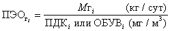 где: ДУВi - допустимый уровень воздействия на ОС. Выражается в единицах допустимого (нормативного) количества i-го фактора. ПЭО газообразных выбросов определяется отношением объема выбросов конкретного загрязнителя (Mri) к величине его ПДК для наделения, животных и растений или ОБУВ (ориентировочный безопасный уровень воздействия).