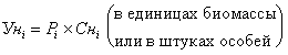 где Пфi - потери отдельных i-х видов растений и животных (%); Снi - часть ареала i-го вида, находящегося в зоне влияния загрязняющих факторов объектов, га; Cai - площадь ареала i-го вида в пределах ATЕ, га. Натурный ущерб (потери) по флоре и фауне определяется по формуле: