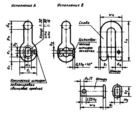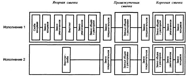 Дата введения 01.01.82 Настоящий стандарт распространяется на якорные цепи с распорками, предназначенные для эксплуатации в любых климатических условиях в якорных устройствах кораблей, судов и плавучих средств. Стандарт не распространяется на якорные цепи, применяемые на полупогружных плавучих буровых установках. (Измененная редакция, Изм. № 1, 2). 1. КЛАССИФИКАЦИЯ1.1. Якорные цепи в зависимости от конструкции должны изготовляться двух исполнений в соответствии со структурными схемами исполнений якорных цепей. (Измененная редакция, Изм. № 2). 1.2. (Исключен, Изм. № 2). 1.3. Якорные цепи должны изготовляться трех типов (категорий): 1 - нормальной прочности - сварные и кованые из стали категории 1а, калибров от 11 до 73 мм; 2 - повышенной прочности - сварные и кованые из стали категории 2а, калибров от 12,5 до 162 мм, литые из стали категории 26, калибров от 40 до 152 мм; 3 - особо высокой прочности - сварные и кованые из стали категории 3а, калибров от 20,5 до 152 мм, литые из стали категории 36, калибров от 40 до 152 мм. (Измененная редакция, Изм. № 1). СТРУКТУРНЫЕ СХЕМЫ ИСПОЛНЕНИЙ ЯКОРНЫХ ЦЕПЕЙ