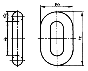 d - калибр цепи; d - калибр концевого звена; d2 » 1,2 d; р2 » 4,8 d; w2 » 4,3 d; l2 » 7,2 d Черт. 3** ** Черт. 2 исключен. Таблица 3 Размеры, мм
