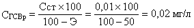 2. СГСВ=min(СГСВр; СБОС)=min(0,02; 0,5)=0,02 мг/л