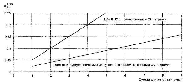 где  -  нормативное значение доли воды, расходуемой на СН ионитной части "цепочки" ВПУ, определяемое в зависимости от суммы анионов (Сl+SO4) в исходной воде по графику (рисунок).