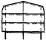 для сечения в пролете b = 100 см; для сечения над опорой b = 4,74´5 = 24 см. По формулам п. 3.18 "Пособия" [39], приведенным в п. 3.2, требуемая арматура в пролете as = 1,75 см2, над опорой as’ = 2,28 см2; принимается в пролете as = 4,74 Ø 8 A-III (по 1 в ребре с шагом ребер 211 мм) = 2,38 см2; над опорой as’ = 5 Ø 8 A-III (шаг 200 мм) = 2,52 см2. Прочность наклонных сечений плиты Расчет аналогичен п. 3.3; прочность наклонных сечений в данном варианте обеспечивается без поперечной арматуры. Прогиб и раскрытие трещин Расчет аналогичен п. 3.2 - 3.3; прогиб плиты не превышает предельно допустимой СНиП величины 1/200 пролета. Ширина раскрытия трещин в наиболее напряженных надопорных сечениях согласно расчету по формулам п.п. 4.14, 4.15 СНиП [9] в данной конструкции плиты вдвое меньше предельно допустимой СНиП величины. Определение усилий в ригелях и стойках Расчетная схема поперечных рам аналогична приведенной в п. 3.2. Изгибающие моменты в ригелях перекрытий и стойках определяются методом распределения моментов защемления [41] в упругой стадии. Изгибающие моменты в ригелях покрытия определяются как в неразрезной двухпролетной балке, полагая с некоторым запасом их шарнирное опирание на наружные стены. Из расчета рамы получены изгибающие моменты: максимальный в ригеле над осью средней стены Мр = 6030 кгс . м, в стойках у наружной стены под перекрытием 6-го этажа Мн = 1139 кгс . м, над перекрытием Мв = 1899 кгс . м. Проверка прочности ригелей Максимальный момент в среднем ригеле у грани стойки