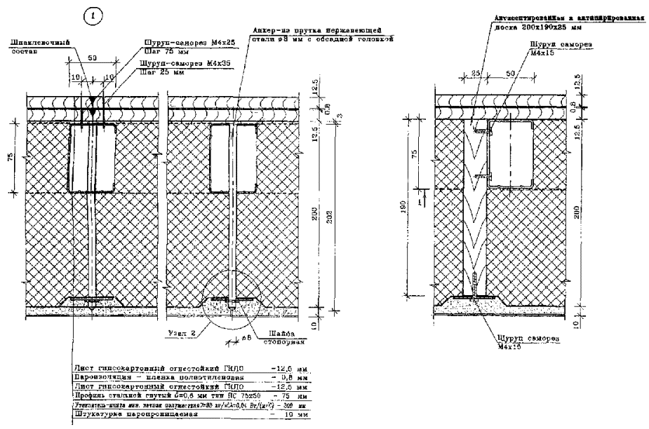 от заполнения стены (металлический каркас из гнутого профиля с шагом 60 см, q = 1,7 кг/м + звукоизоляция δ = 150 мм, γ = 200 кг/м3 + 2 слоя штукатурки по δ = 10 мм, γ = 1800 кг/м3):