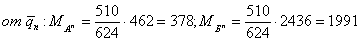 по формуле Мiв = 0,125´ в пролете на расстоянии 3/8