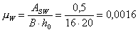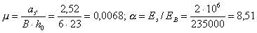В сечении над средней стеной: в = 2вр (вр - ширина ребра) = 2´8 = 16 см; h0 = 23 см. По формулам п.3.18 "Пособия" [39]: