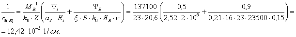 Кривизны в сечениях с трещинами по формулам п.п. 4.27 - 4.29 СНиП [9] в сечении над средней опорой: