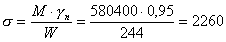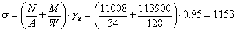 прочность ригеля обеспечивается. Проверка прочности крайних стоек (по осям "А" и "В") 1) Под перекрытием 6-го этажа М = 1139 кгс . м; N = 214 + 1082 + (9841 - 2´6030/5,9) + 1915 = 11008 кгс; А = 34 см2 ; W = 128 см3 (сортамент);