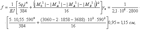 (54) Qsw = Условие (50): Проверка прогиба. Для расчета пролет разделяется на 6 участков, на границах которых с координатами (м): l/6 = 0,99; l/3 = 1,97; l/2 = 2,95; 2´l/3 = 3,94; 5´l/6 = 4,92 м по формулам строительной механики находятся изгибающие моменты. Предварительно