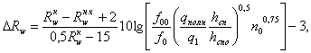 где q - поверхностная плотность несущей части перекрытия кг/м2; h - ее толщина; hпр - ее приведенная толщина (для плиты сплошного сечения h/hпр = 1); n0 - изменение коэффициента потерь несущей части перекрытия при наличии в ней сыпучего материала (при отсутствии сыпучего материала n0 = 1). При применении раздельных или слоистых полов значение ΔRw рассчитывают согласно [44], [45] по формуле: