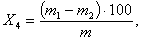 Анализируемую пробу карбида кальция, отобранную по п. 3.4, взвешивают на технических весах по ГОСТ 24104 3-го или 4-го класса точности с наибольшим пределом взвешивания 50 кг, частями по 20-25 кг высыпают в аппарат рассева. При ручном рассеве совершают 30 качаний аппарата за ручку от упора до упора. При механическом рассеве процесс заканчивается автоматически. Карбид кальция, оставшийся на одноименных ситах, собирают вместе и взвешивают. Карбид кальция, прошедший через нижнее сито, выгружают и взвешивают. (Измененная редакция, Изм. № 2, 3). 4.4.2. Обработка результатов Массовую долю кусков карбида кальция других размеров (Х) в процентах вычисляют по формуле