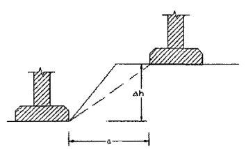 Рис. 5.3 (Продолжение). Величины максимальных горизонтальных перемещений ограждающих конструкций в зависимости от глубины котлована: А) в песках, Б) в супесях и суглинках, В) в глинах. 1 - стена в грунте толщиной 600 мм, EI=540000 кН·м2; 2 - шпунт ларсен-5, EI=107000 кН·м2; 3 - ограждение из труб Ø325 мм с шагом 1 м, EI=21000 кН·м2. 5.15 При устройстве вблизи существующих зданий и сооружений свайных фундаментов или шпунтовых ограждений из элементов, погружаемых забивкой или вибрационным оборудованием, дополнительные деформации основания существующих фундаментов от динамических воздействий рекомендуется определять в соответствии с ВСН 490-87. Дополнительные деформации основания, вызванные динамическими воздействиями, определяются в зависимости от ускорения вертикальных колебаний фундамента, типа грунтов, конструктивной схемы здания и категории его состояния. 5.16 При необходимости использования защитных мероприятий по снижению величин дополнительных деформаций оснований и фундаментов существующих зданий, вызванных новым строительством, эффективность этих мероприятий должна оцениваться путем математического моделирования в соответствии с п. 5.10 настоящих Рекомендаций. 5.17 В случае устройства анкерного крепления ограждения котлована вновь строящегося здания следует учитывать возможность его влияния на деформации фундаментов рядом расположенных существующих зданий и сооружений за счет дополнительных усилий, передаваемых на основание при натяжении анкеров, а также за счет ползучести корней анкеров в процессе экскавации котлована. Величины дополнительных деформаций фундаментов существующих зданий при расположении корней анкеров в пределах сжимаемой толщи их основания, а также в случае возможности передачи на фундаменты дополнительных горизонтальных составляющих нагрузок должны оцениваться методами математического моделирования в соответствии с п. 5.10 настоящих Рекомендаций. 6. Выбор метода устройства оснований и фундаментов нового здания6.1 При возведении нового здания, вплотную примыкающего к существующему, минимальное расстояние между краями нового и существующего фундамента устанавливается при проектировании в зависимости от способа разработки грунта и глубины котлована, конструкции фундаментов и разделительной стенки, а также требований раздела 9. 6.2 Конструкция, размеры и взаимное размещение фундаментов нового здания, устраиваемых около существующих зданий, должны назначаться с учетом развития дополнительных неравномерных деформаций фундаментов существующих зданий и образования перекосов несущих конструкций этих зданий (фундаментов, стен, перекрытий и др.), вызванных дополнительной осадкой, рассчитанных в соответствии с рекомендациями раздела 5. 6.3 Если проектом нового здания не предусмотрено опирание его конструкций на конструкции существующего здания, следует устраивать осадочный шов между новым зданием и существующим. 6.4 Осадочные швы должны быть сконструированы и выполнены так, чтобы ширина шва обеспечивала раздельное перемещение новых и старых построек в течение всего периода их эксплуатации. 6.5 При необходимости заложения фундаментов нового здания в неподкрепленном котловане ниже отметки заложения фундаментов существующего (рис.6.1) допустимая разность отметок заложения определяется исходя из условия Dh£a(