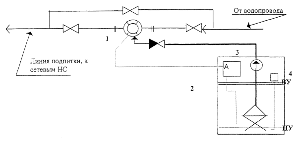 Рис 17. Схема установки для дотирования комплексонов. Обозначения: 1 - водомер с узлом подмешивания комплексона, 2 - бак с 5 % раствором комплексона, блоком автоматики А, насосом дозатором 3 и указателем уровня 4. Рекомендуемые концентрации комплексона в рабочих системах Таблица 12 Рекомендуемые концентрации комплексонов ОЭДФ в сетевой и подпиточной воде, по данным ИРЭА для различных значений индекса насыщения исходной воды