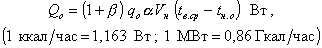 где: b - поправочный коэффициент, учитывающий расход теплоты на подогрев инфильтрационного воздуха. Значение b равно 0,1 - 0,3 для аэровокзалов и пассажирских павильонов при скорости ветра 5 - 10 м/с за три наиболее холодных месяца, для старых жилых зданий b = 0,15, для ангаров с одинарным остеклением b = 1 - 2. qo (qв) - удельные тепловые характеристики на отопление (вентиляцию) здания (табл. 13); a - поправочный коэффициент (принимают только для отопительной характеристики здания);