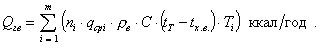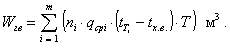 где: i - количество видов потребителей горячей воды; ni - число потребителей (одного вида) горячей воды, qcpi - средняя норма расхода горячей воды , м3/сутки, (СНиП 2.04.01-85, приложение 9); rв - плотность воды, кг/м3; С - теплоемкость воды 1 ккал/(кг·°С); tТi - средняя температура горячей воды в водоразборных стояках (для жилых домов + 50 °С); tx.в - температура холодной воды в водопроводе в зимний период (при отсутствии данных принимается равной 5 °С, при питании из скважины - 13 - 14 °С); Тi - период потребления горячей воды в сутках; tx.л - температура холодной воды в водопроводе в летний период (при отсутствии данных принимается равной 15 °С). Расход воды в системе ГВС равен: