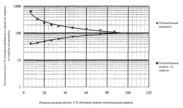 подачи насосов ниже 40 - 50 % от номинального значения резко начинают