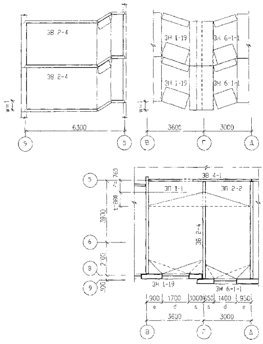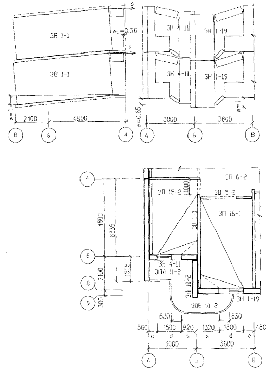 S7w>Rw,ex, то если где s7 несущая способность связи растяжения между наружной стеной и перекрытием. ПРИЛОЖЕНИЕ 2Пример расчета здания серии ПЗМ на устойчивость против прогрессирующего обрушения.1. Исходные данные. Проект разработан Мастерской № 3 МНИИТЭП. Конструктивная система здания - поперечно-стеновая (рис. 11). Высота этажа hf=280 см. Наружные стены толщиной 32,5 см трехслойные железобетонные двухмодульные и одномодульные; внутренние стены толщиной 18 см и 14 см из тяжелого бетона В22,5. Плиты перекрытий сплошные толщиной 14 см из тяжелого бетона В22,5, армированного нижней сеткой и каркасами. Конструкции сборных элементов приняты по альбомам, указанным в таблице 1. Исходные данные по сборным элементам Таблица 1.