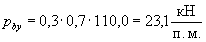где Apbx - площадь эпюры горизонтального давления волны на вертикальный жесткий экран. Такая же величина горизонтального волнового давления принимается действующей на вертикальную расчетную плоскость при расчете устойчивости жесткого экрана. 3.2.2. На конструкцию основания жесткого экрана уголкового типа без камеры гашения необходимо учитывать дополнительную нагрузку от вертикального давления волны Рby, которая принимается распределенной равномерно по ширине основания конструкции экрана. С учетом взвешивающего давления интенсивность нагрузки определяется по формуле