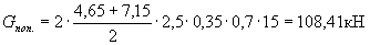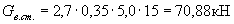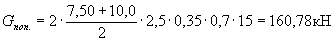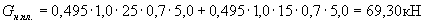 1) Собственный вес с учетом коэффициента полноты kпл = 0,7 и угла наклона a=45°.