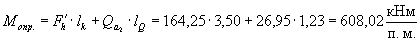 Балка, перекрывающая массив 3-го курса, рассчитывается на действие равномерной нагрузки от веса тетраподов (qт) волнового воздействия (qв) и собственного веса (qсв) по схеме однопролетной консольной балки.