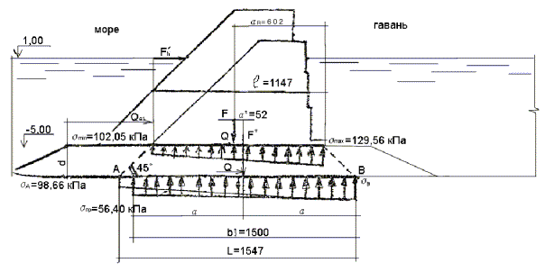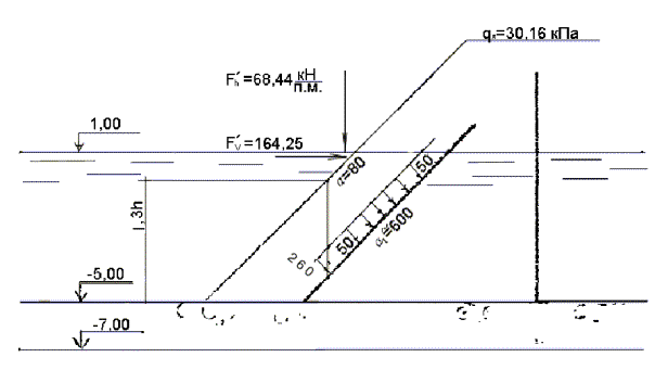 Основной нагрузкой в строительный период является давление волны с параметрами h = 2,0 м и l = 30,0 м.